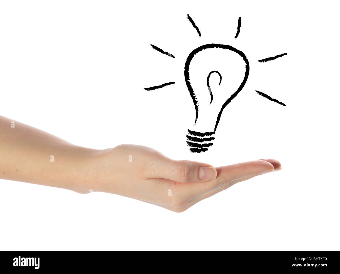 Una Bella Mano Umana Tenendo Un Stilizzata Della Lampadina Della Luce Tutti Gli Isolati Su Sfondo Bianco Foto Stock Alamy