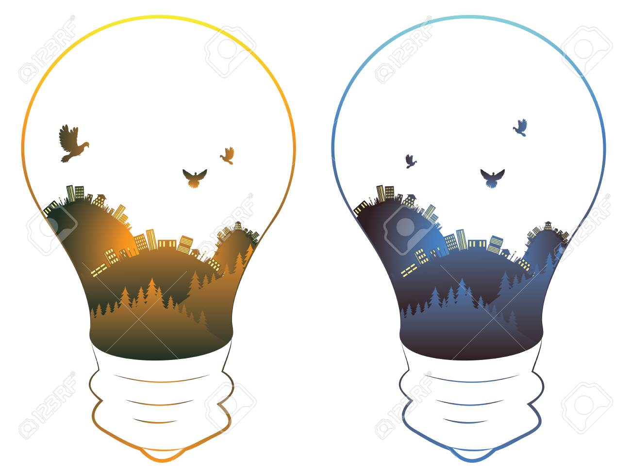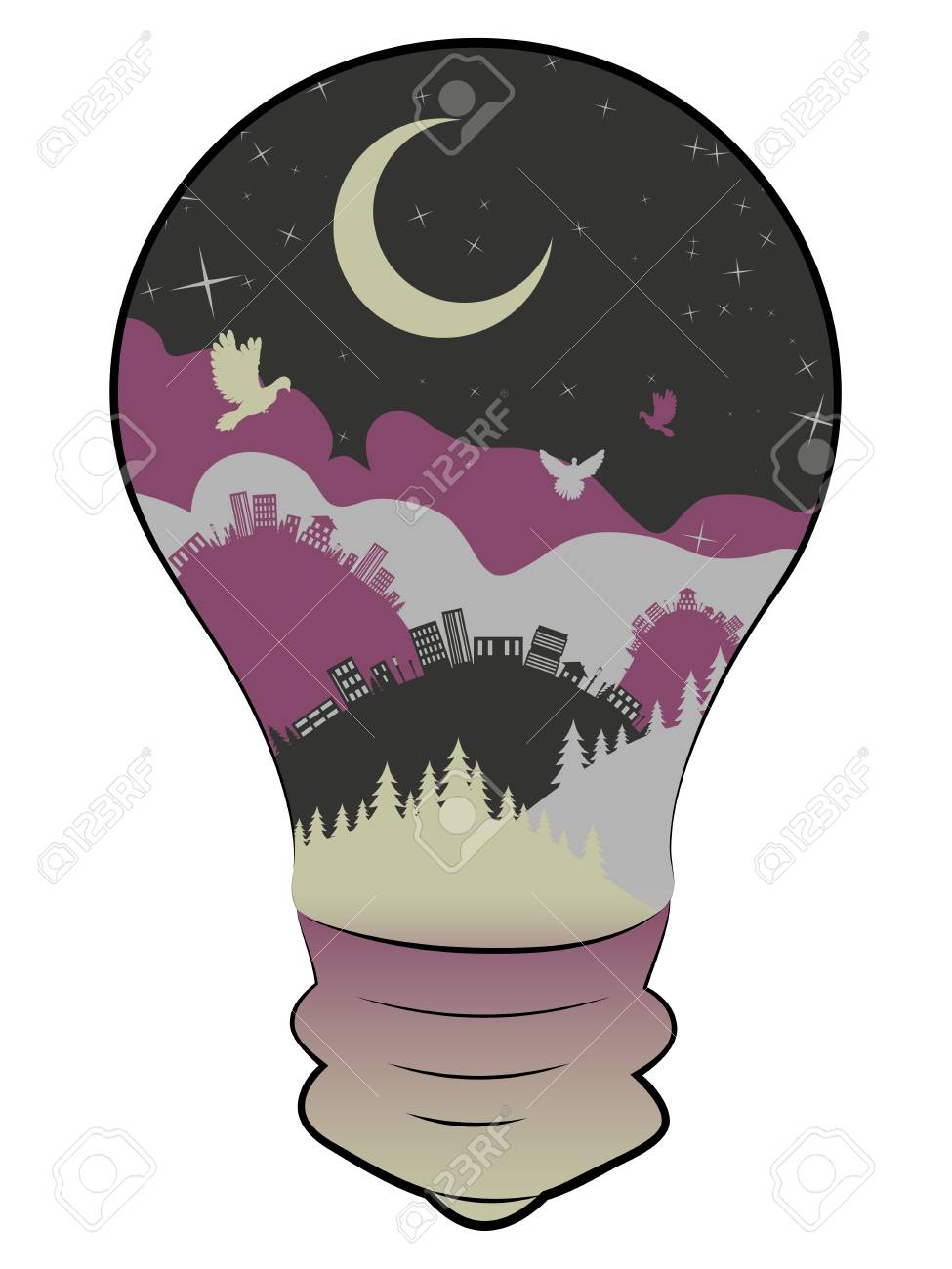 Vettoriale Citta Stilizzata All Interno Di Una Lampadina Image 54119381