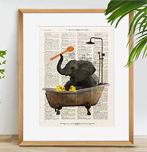 Stampa Elefante In Vasca Da Bagno Storie Quotidiane Su Libro Antico Amazon It Handmade