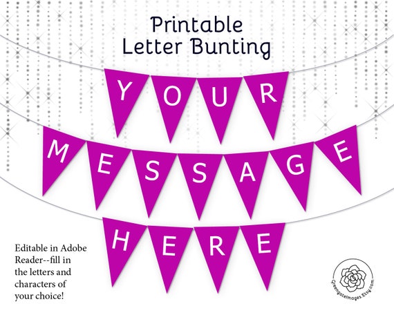 Magenta Letter Banner Bunting Download Editable Party Etsy