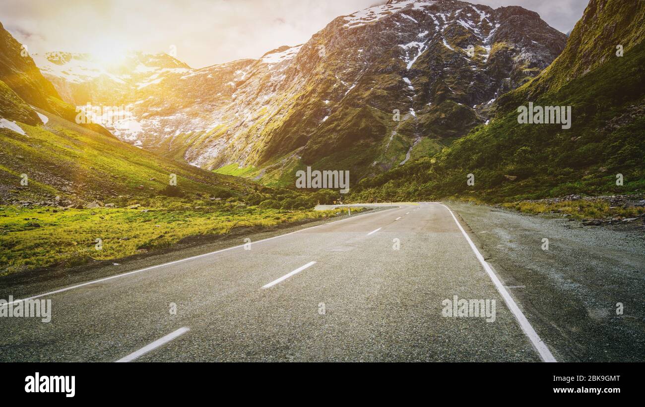 Strada Di Montagna Su Collina Nella Foresta Paesaggio Naturale Girato A Milford Road State Highway 94 In Nuova Zelanda Trasporto E Turismo Viaggio Su Strada Con Foto Stock Alamy