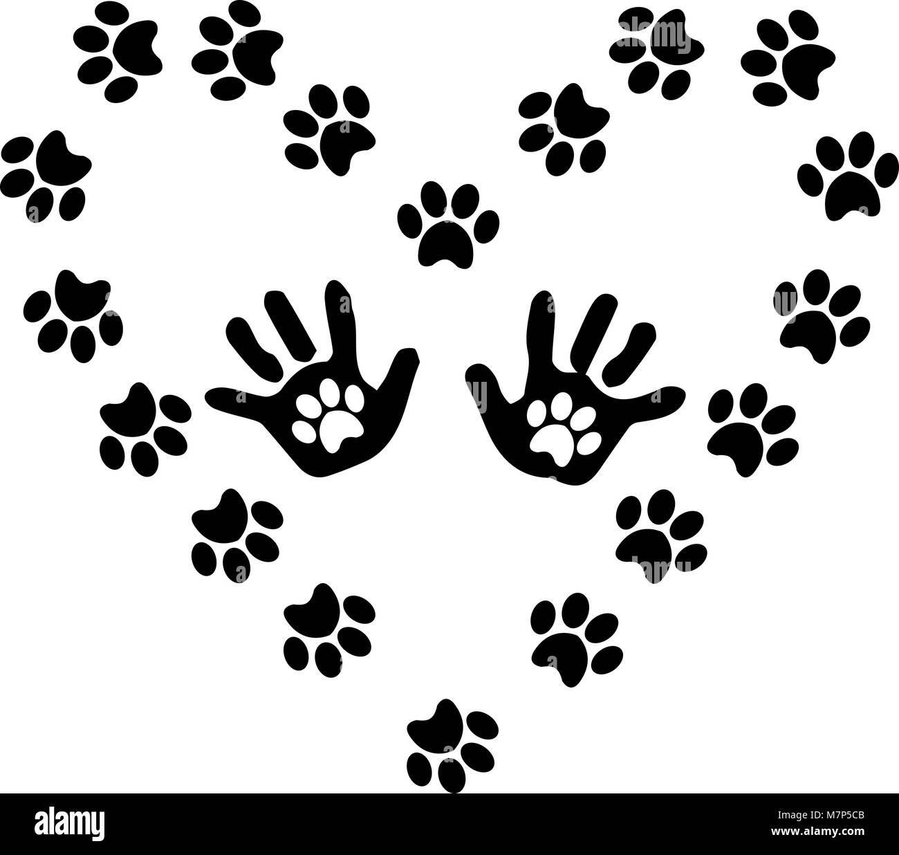 Silhouette Nera Di Baby Handprints Con Pawprints All Interno Incorniciato Con Cuore Delle Zampe Degli Animali Via Isolato Su Sfondo Bianco Bianco E Nero Ve Immagine E Vettoriale Alamy