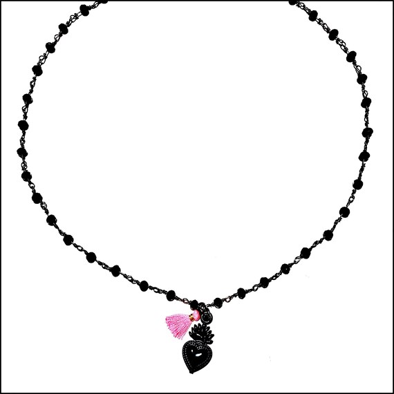 Neon Collection Nero Collar Con Sacro Cuore E Nappina Neon Etsy
