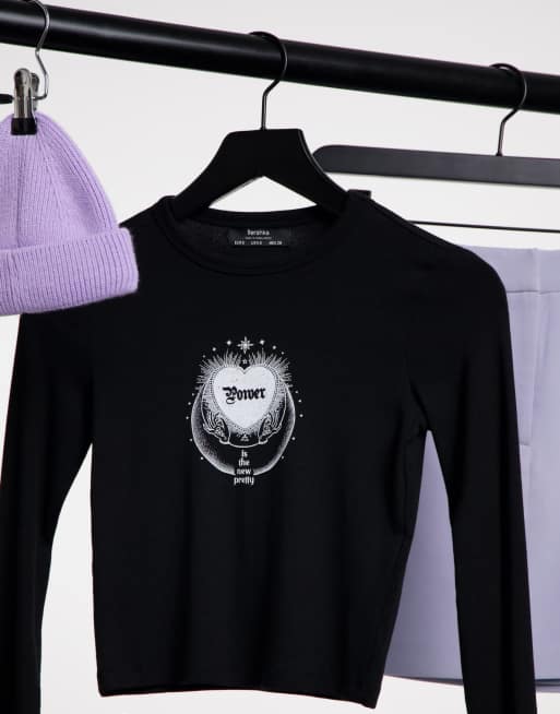 Bershka T Shirt A Maniche Lunghe Nera Con Motivo Con Cuore Asos