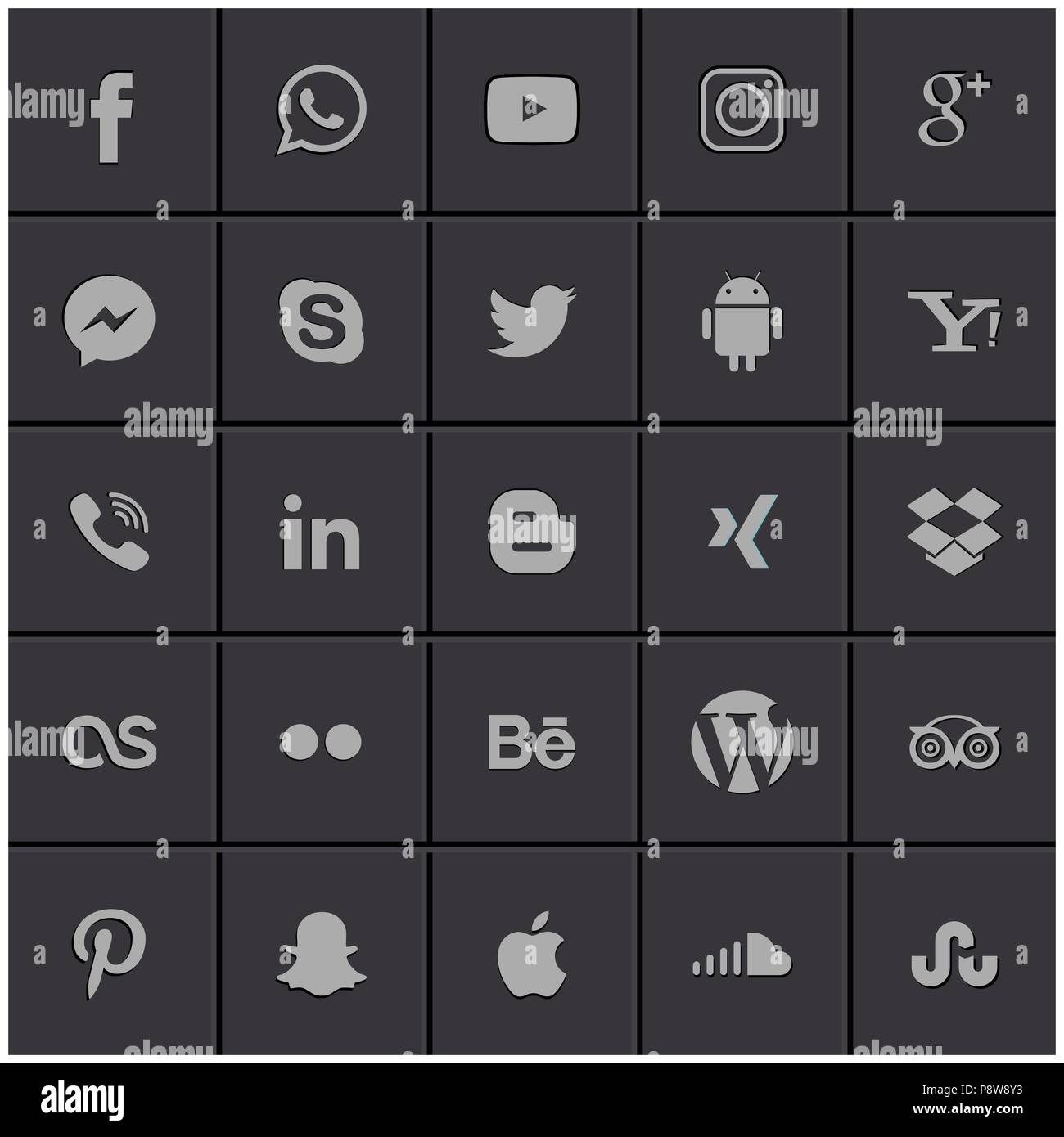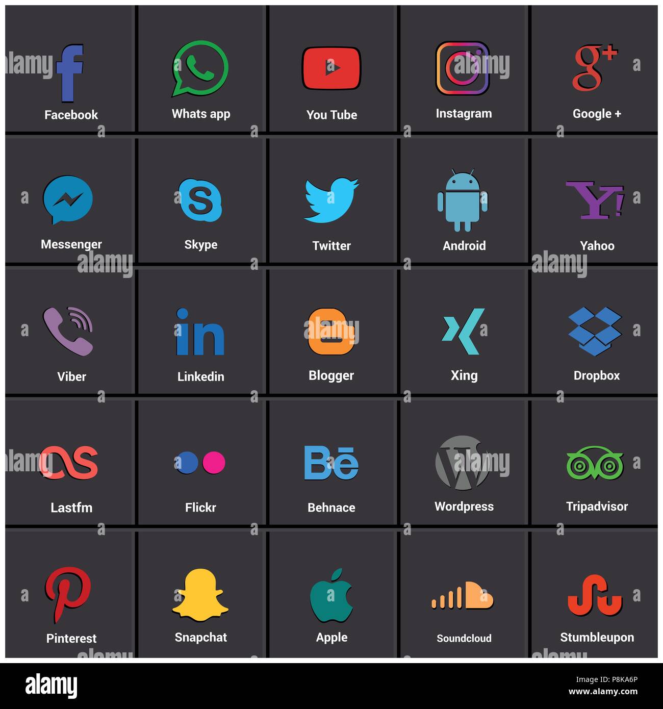Kiev Ucraina 05 Dicembre 2016 Raccolta Di Bianco Popolare Social Media Icone Stampate Su Carta Nera Facebook Twitter Google Plus Instagram P Foto Stock Alamy