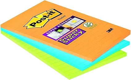 Post It 51335 Super Sticky Foglietti A Righe 45 Fogli Confezione Da 3 Blocchetti 102 X 152 Mm Neon Amazon It Cancelleria E Prodotti Per Ufficio