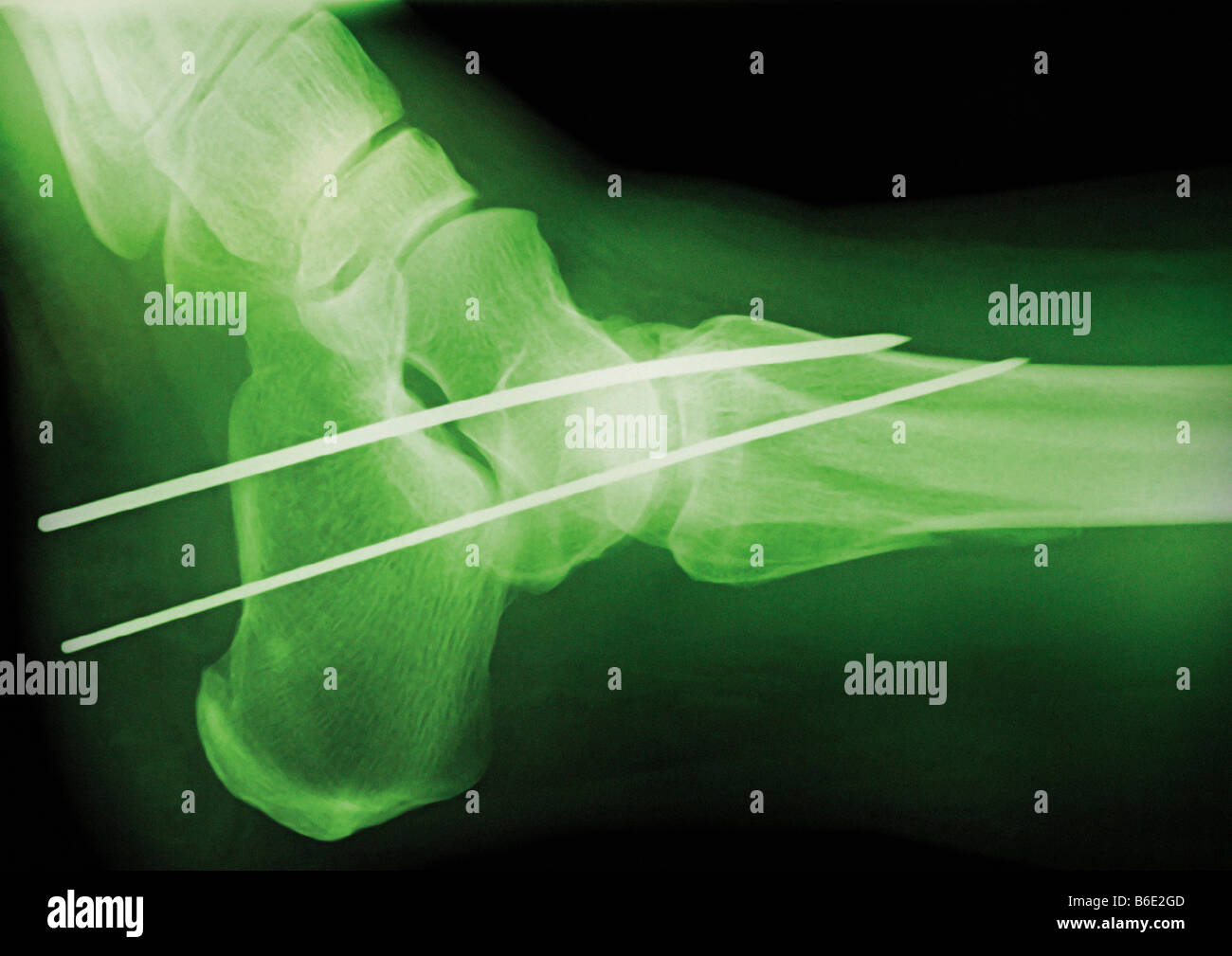 Temporanea Di Immobilizzazione Della Caviglia Profilo Colorato X Ray Questi Perni Lunghi Stanno Tenendo I Frammenti Ossei In Posizione Foto Stock Alamy