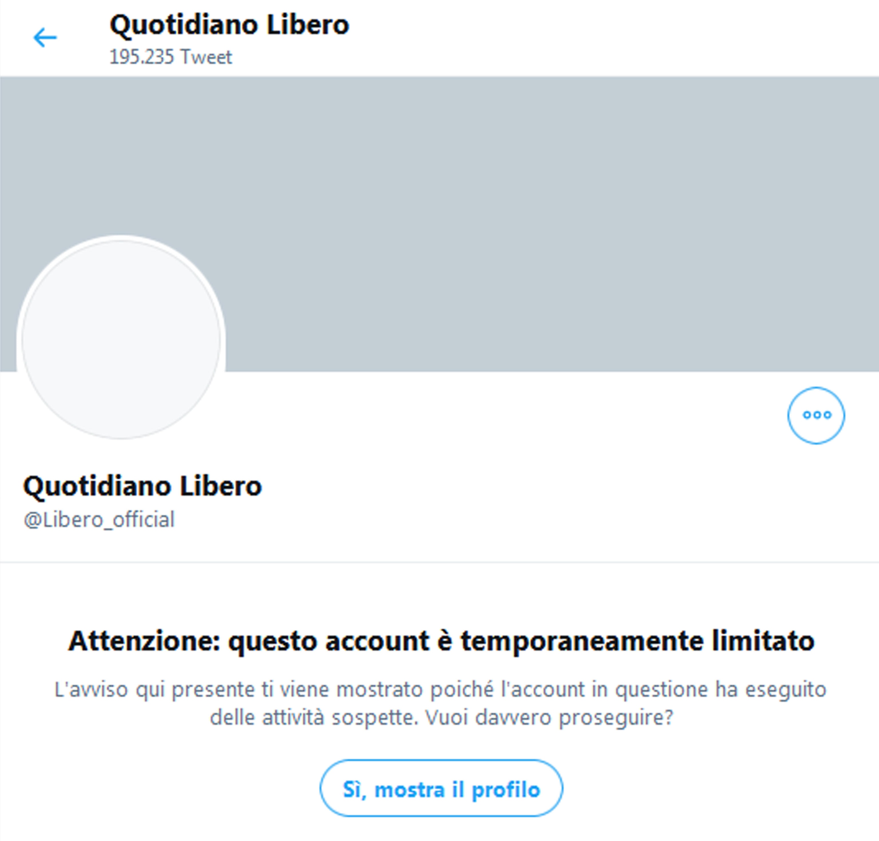 Twitter Limita L Account Di Libero Sul Profilo Ufficiale Del Quotidiano Appare Un Alert Il Fatto Quotidiano