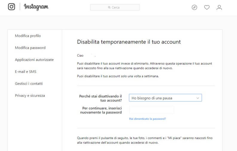 Come Si Puo Disabilitare Temporaneamente L Account Instagram