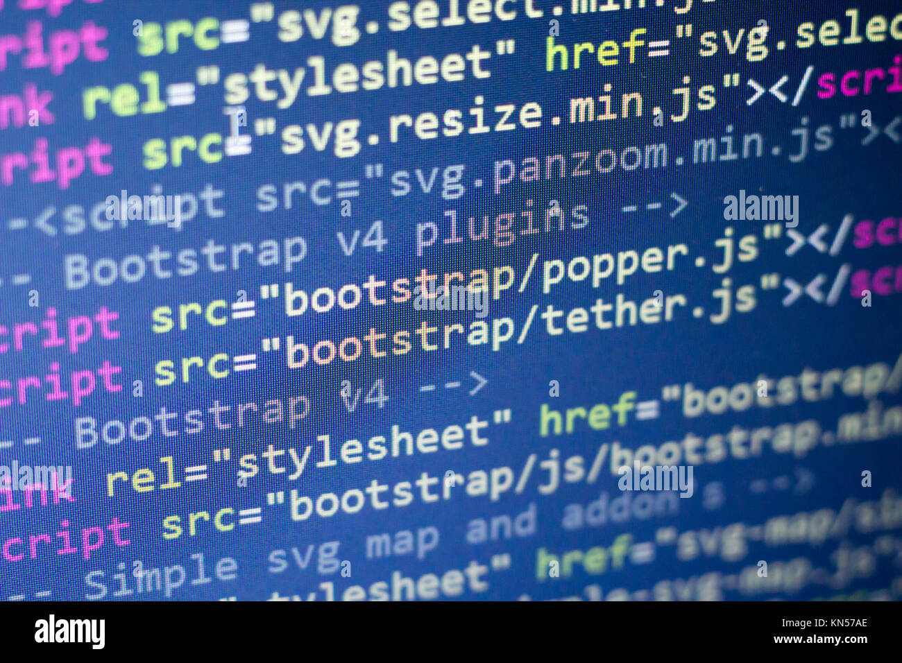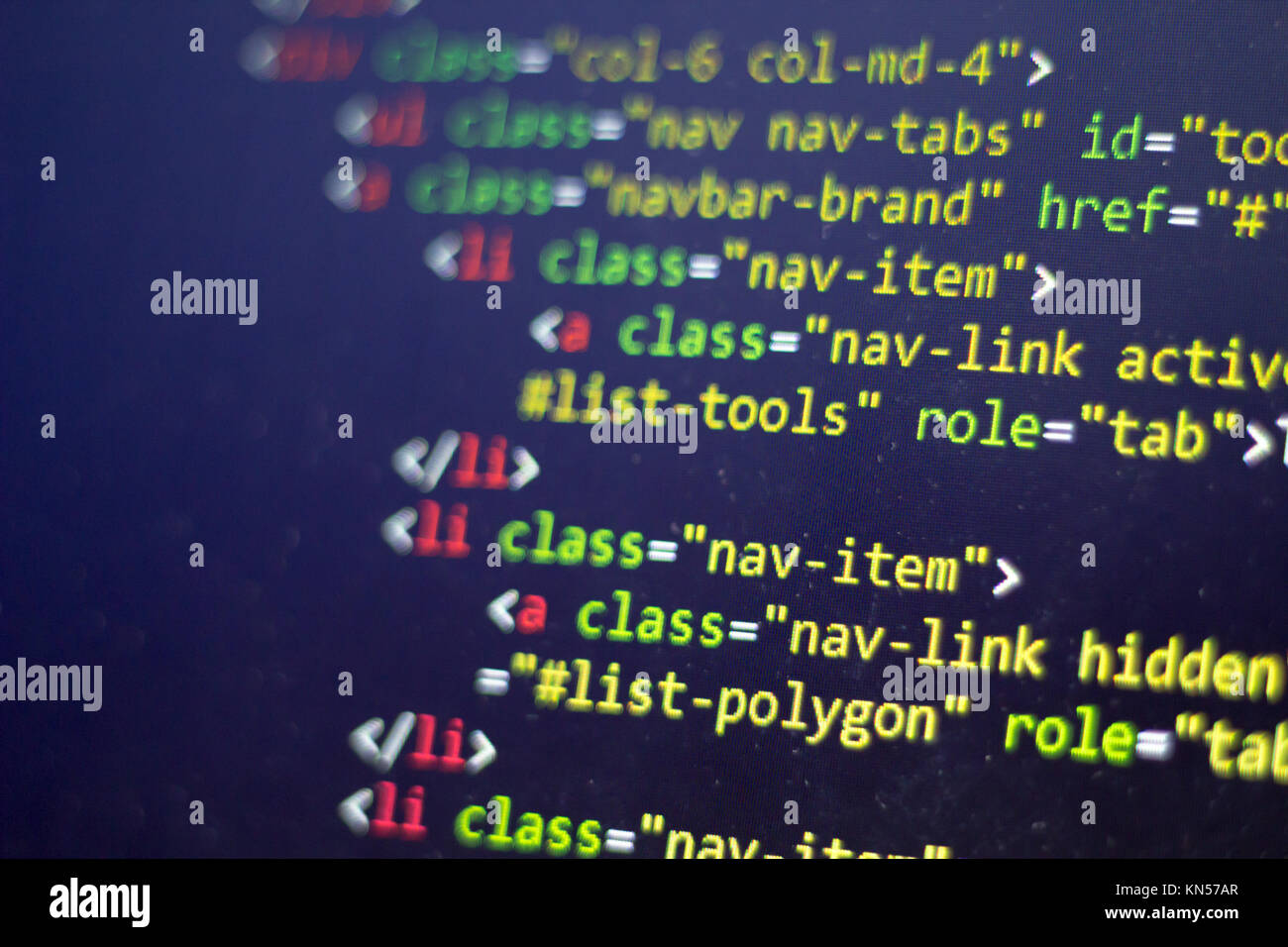 Codice Html Programmazione Di Computer Il Codice Sorgente Schermo Astratto Di Web Developer La Tecnologia Digitale Background Moderno Profondita Di Campo Foto Stock Alamy