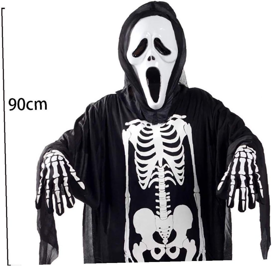 Linjunddd Costumi Nero Cranio Di Scheletro E Spaventoso Che Grida Mascherina Del Fantasma Di Cosplay Robes Set Masquerade Santo Robe Abito Fantasia Con La Maschera Di Protezione E Guanti Fantasma Amazon It Giochi
