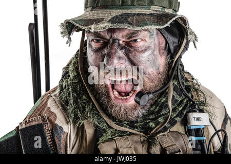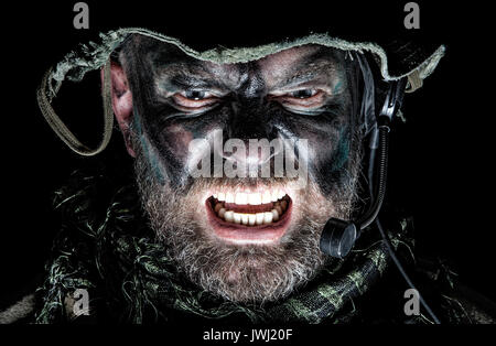 Immagini Stock Stati Uniti Commando Face Studio Shot La Bocca Si Apri Urlando Soldato Emettendo Uno Spaventoso Frightening Urla Intimidito Closeup Ritratto Ritagliata Isolata Luce Inferiore Image 83831198