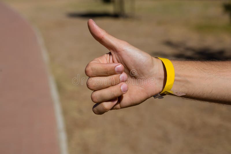 Mano Dell Uomo Che Fa Auto Stop Al Bordo Della Strada Immagine Stock Immagine Di Adulto Americano 93231647