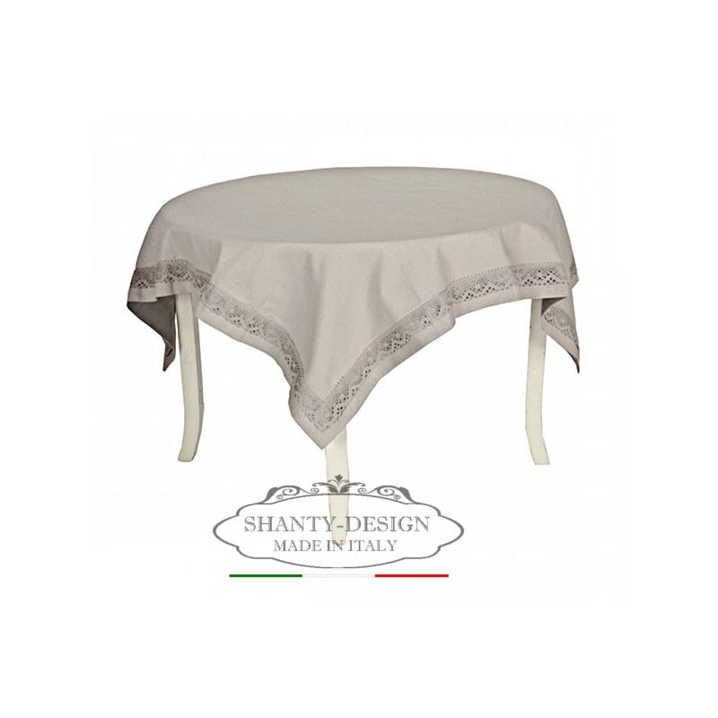 Tovaglia Artigianale Per 12 Persone Lino Ecru Pizzo Ricamato Su Tulle Eloise Marticastore