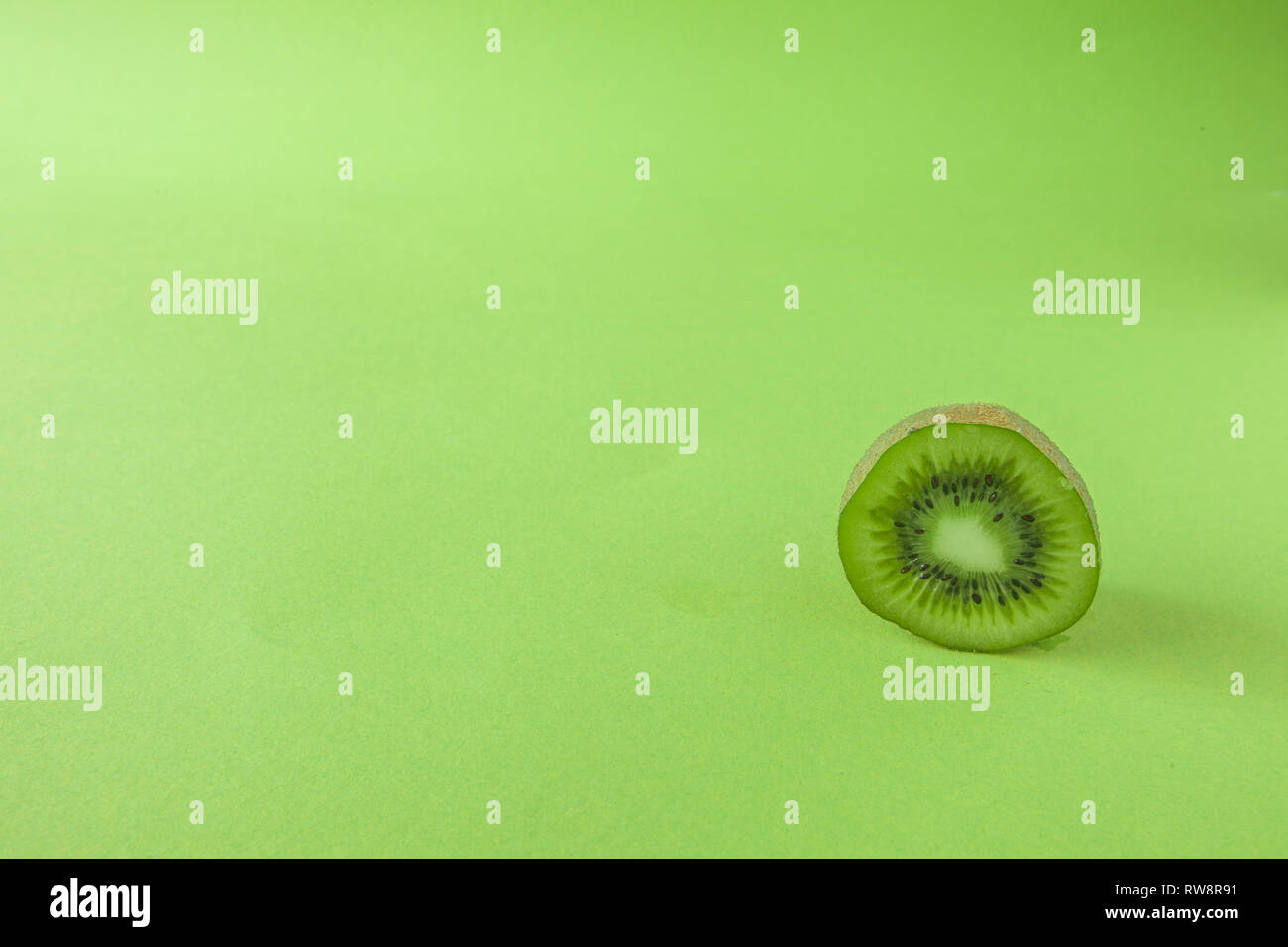 Perfetto Fresco Verde Kiwi Isolato Su Sfondo Verde Tutta La Profondita Di Campo Foto Stock Alamy
