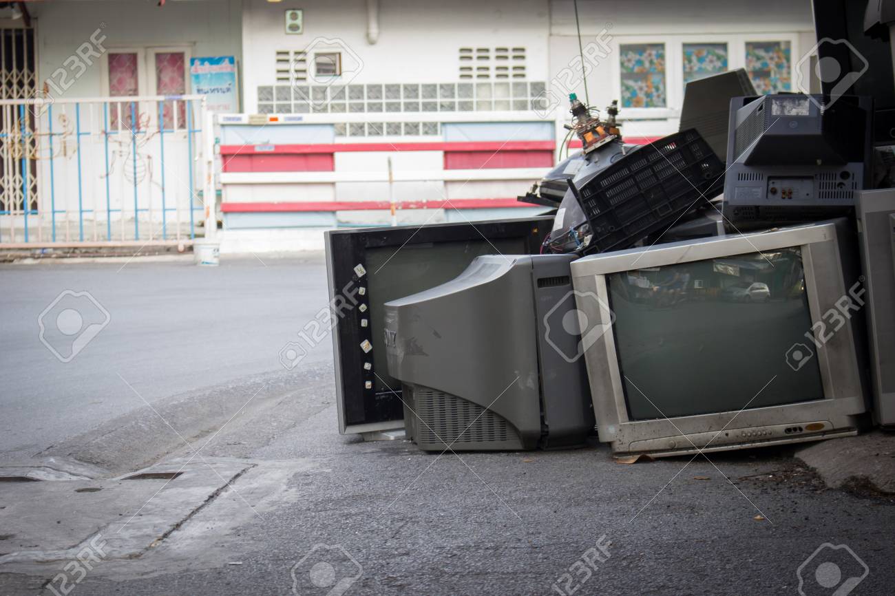 Una Vecchia Tv Rotta Ha Andato Sulla Via Immagine Stock Immagine Di Eliminazione Rotto 129516915