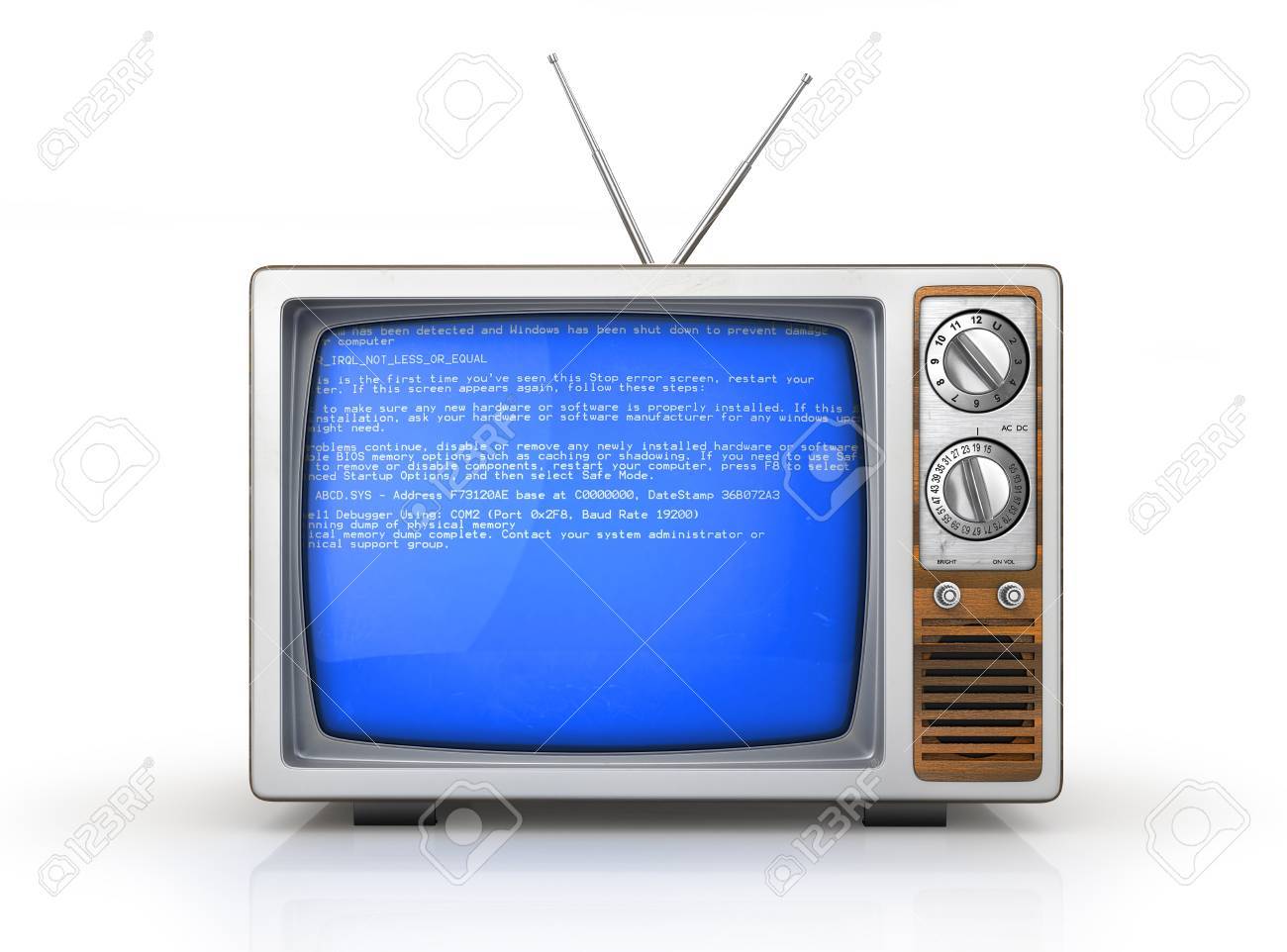 Immagini Stock Concetto Di Sovraccarico Di Etere Retro Tv Rotta Con Errore Sullo Schermo Su Una Priorita Bassa Bianca Schermo Blu Illustrazione 3d Image 80312756