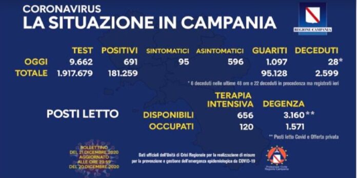 Aggiornamento Covid Campania Bollettino 21 Dicembre 2020