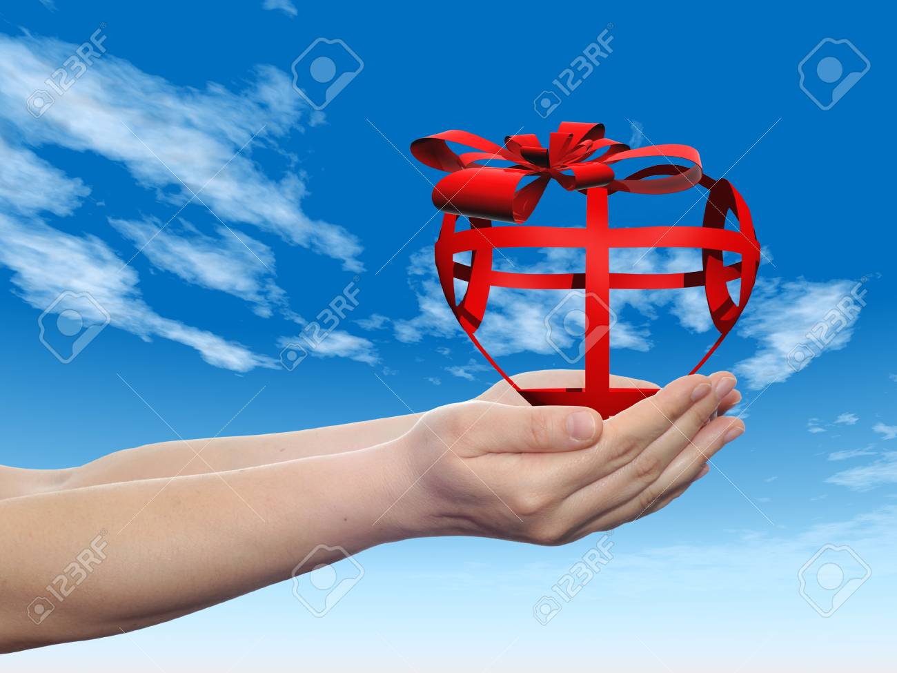 Immagini Stock Cuore Concettuale 3d Con Un Nastro Tenuto In Mano Per Vacanze O Disegni D Amore Image 43248919