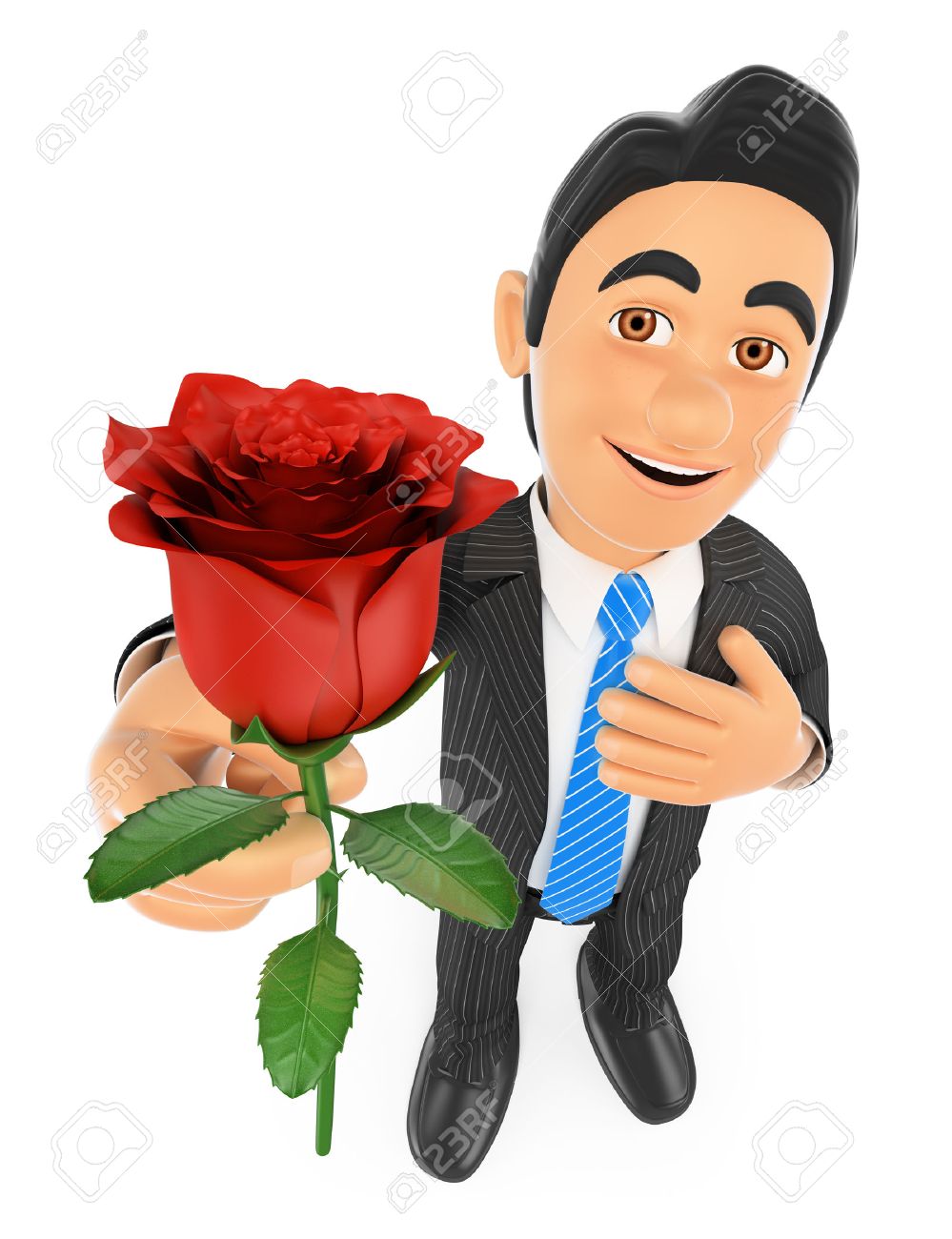 Immagini Stock Uomini D Affari 3d D Affari Che Da Una Rosa Rossa Con La Mano Sul Cuore Concetto Di Amore Isolato Sfondo Bianco Image 51920480