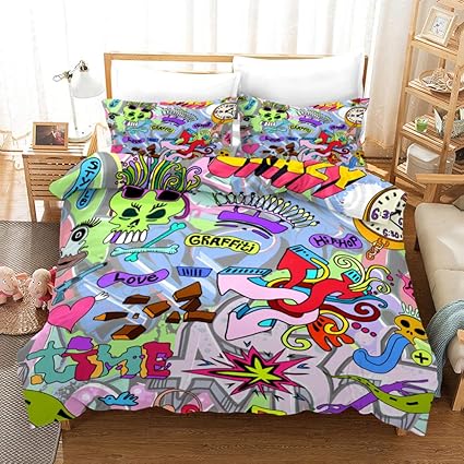 Ezezwsnbb Copripiumino Set 200x200 Cm Caramelle Graffiti 3d Stampato Biancheria Da Letto In Microfibra Set Copripiumino Con Chiusura A Cerniera E 2 Federe Cuscino Bambino Adulto 3 Pezzi Amazon It Casa E Cucina