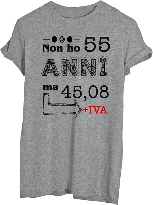 New Indastria T Shirt Compleanno Non Ho 55 Anni Ma 45 08 Iva Idea Regalo Divertente Amazon It Abbigliamento