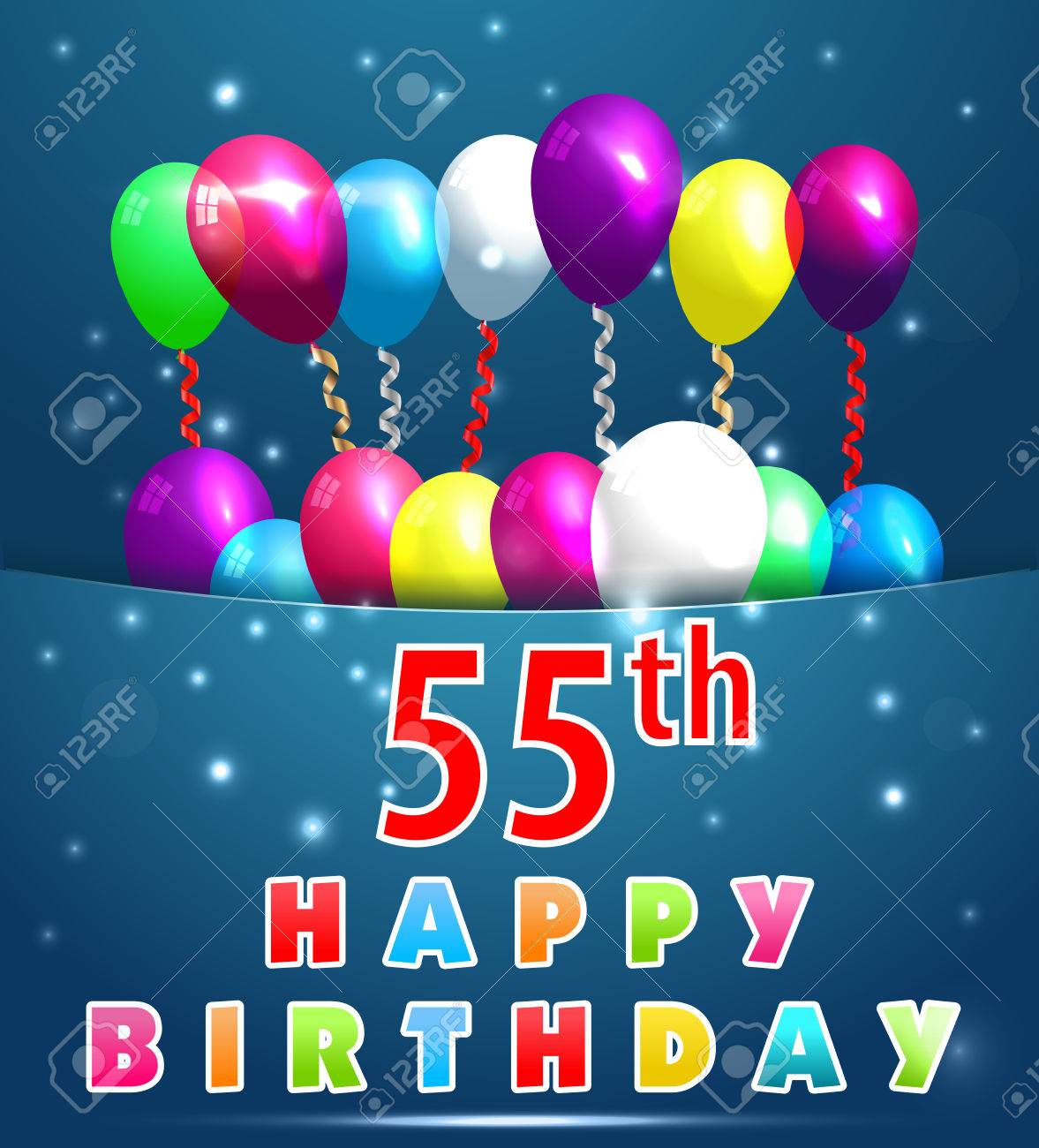 Vettoriale 55 Anni Scheda Di Buon Compleanno Con Palloncini E Nastri 55 Compleanno Image 36933129