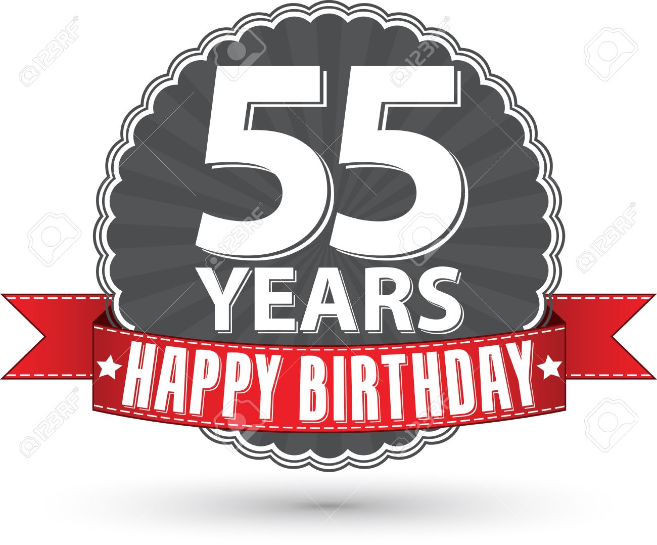 Vettoriale Buon Compleanno 55 Anni Etichetta Retro Con Nastro Rosso Image 36053662