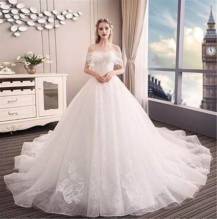 He Shop Abito Da Sposa 2019 Sposa Una Spalla Senza Maniche Con Coda Lunga Principessa Con Nappe Sexy Pizzo Con Fiore Abiti Da Banchetto Ricamo Personalizza S Amazon It Casa E Cucina