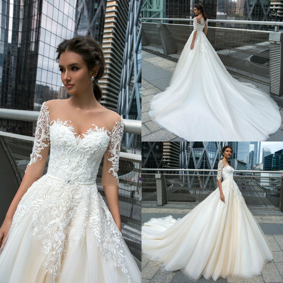 Acquista Abiti Da Sposa 2019 Crystal Design Beach Jewel Neck Una Linea Mezza Manica Abito Da Sposa In Pizzo Abiti Appliques Abito Da Sposa Paese In Rilievo A 108 23 Dal Dressvip Dhgate Com