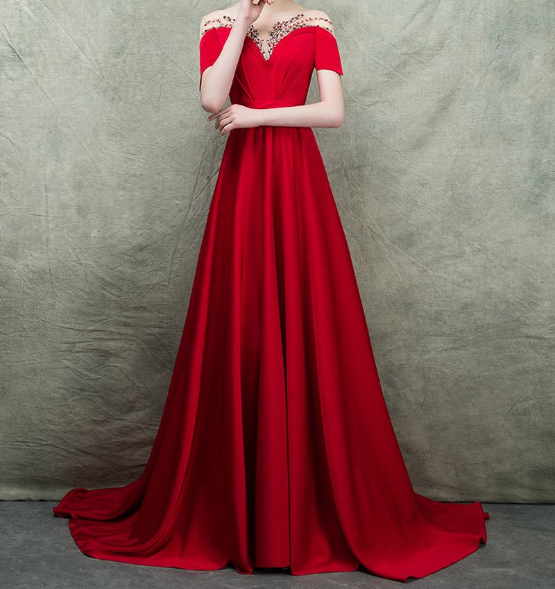 Acquista Abiti Eleganti Lunghi Rossi Eleganti In Raso Con Collo A Lustrini Brillanti Perline Sweep Train Abito Da Sera 2019 Nuovo Arrivo A 99 64 Dal Lpdqlstudio Dhgate Com