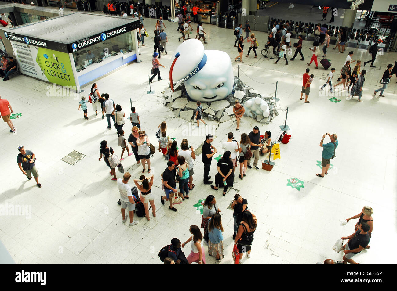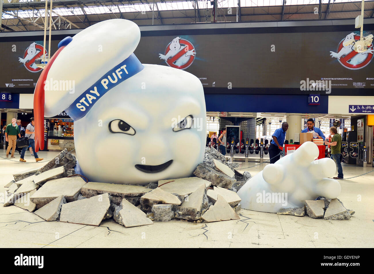 Londra Regno Unito 23 Luglio 2016 Un Gigante Uomo Dei Marshmallow Emergenti In Stazione Waterloo A Promuovere I Piu Recenti Film Ghostbusters Acchiappafantasmi Foto Stock Alamy
