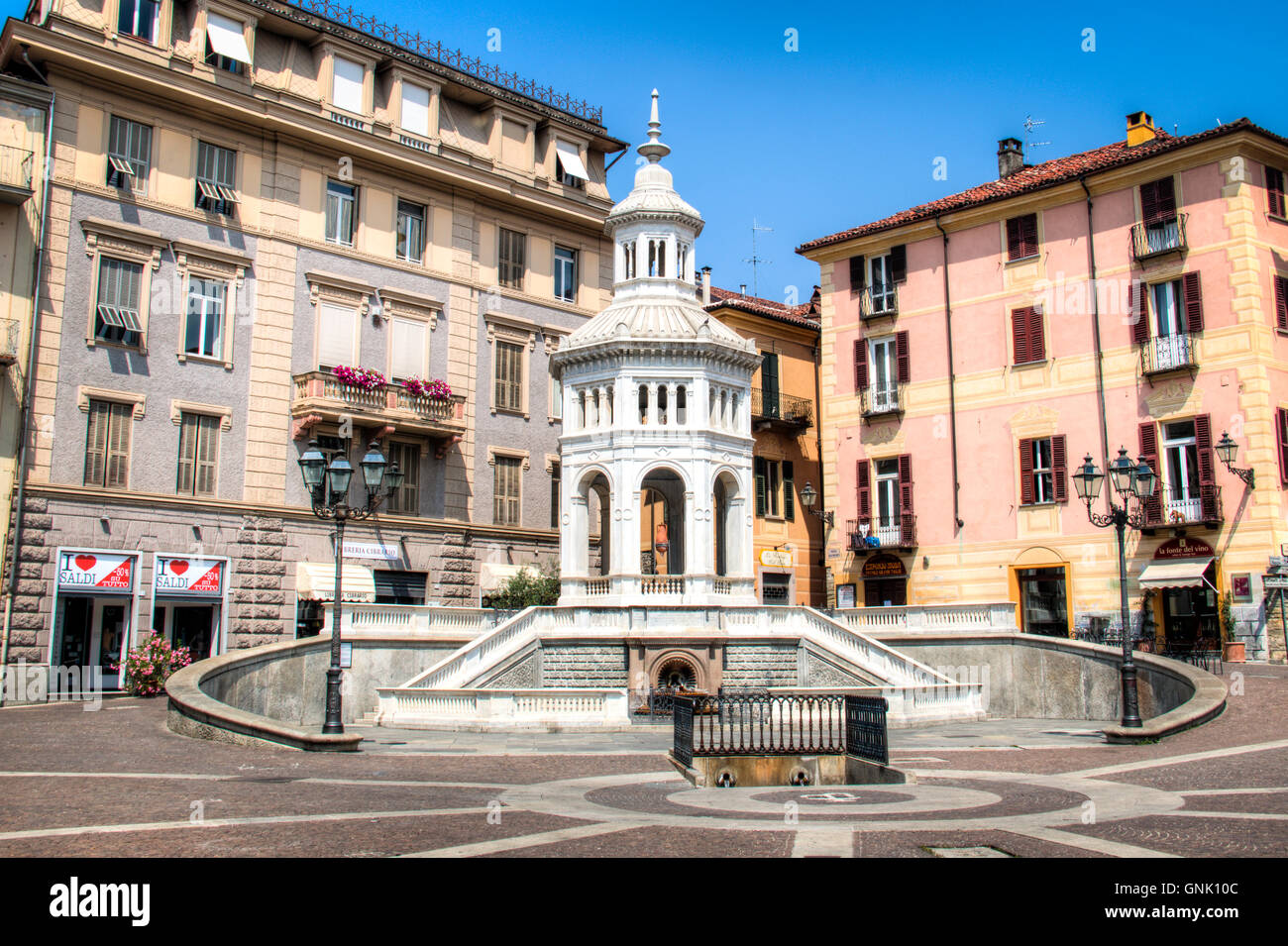 Acqui Terme Italy July 2016 The Main Square With Fountain In Stock Photo Alamy