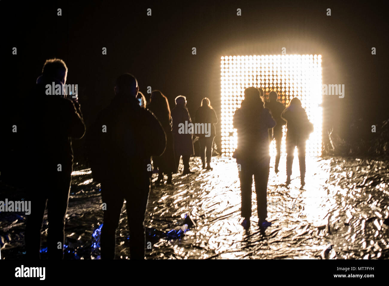 Night Scene Ad Alto Contrasto Foto Di Persone All Aperto Di Arte Contemporanea Luci E Delle Prestazioni Musicali Nella Citta Di Roma Italia Foto Stock Alamy