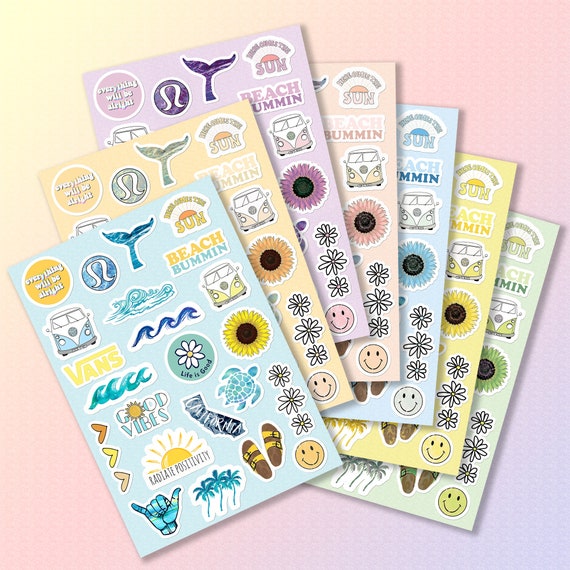 Small Large Stickers Light Pink Blue Yellow Vsco Girls Etsy Cute Stickers Iphone Case Stickers Aesthetic Stickers