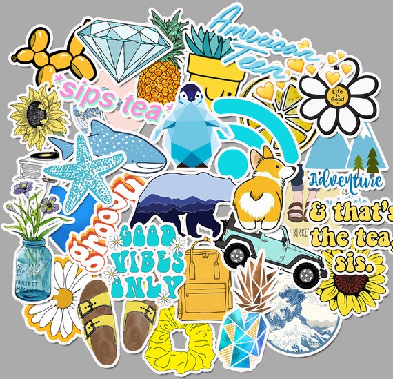 Vsco Girls Light Blue Yellow Stickers For Bottle Phone Case Laptop Tumbler 23 Pcs Iphone Case Stickers Aesthetic Stickers Cute Stickers