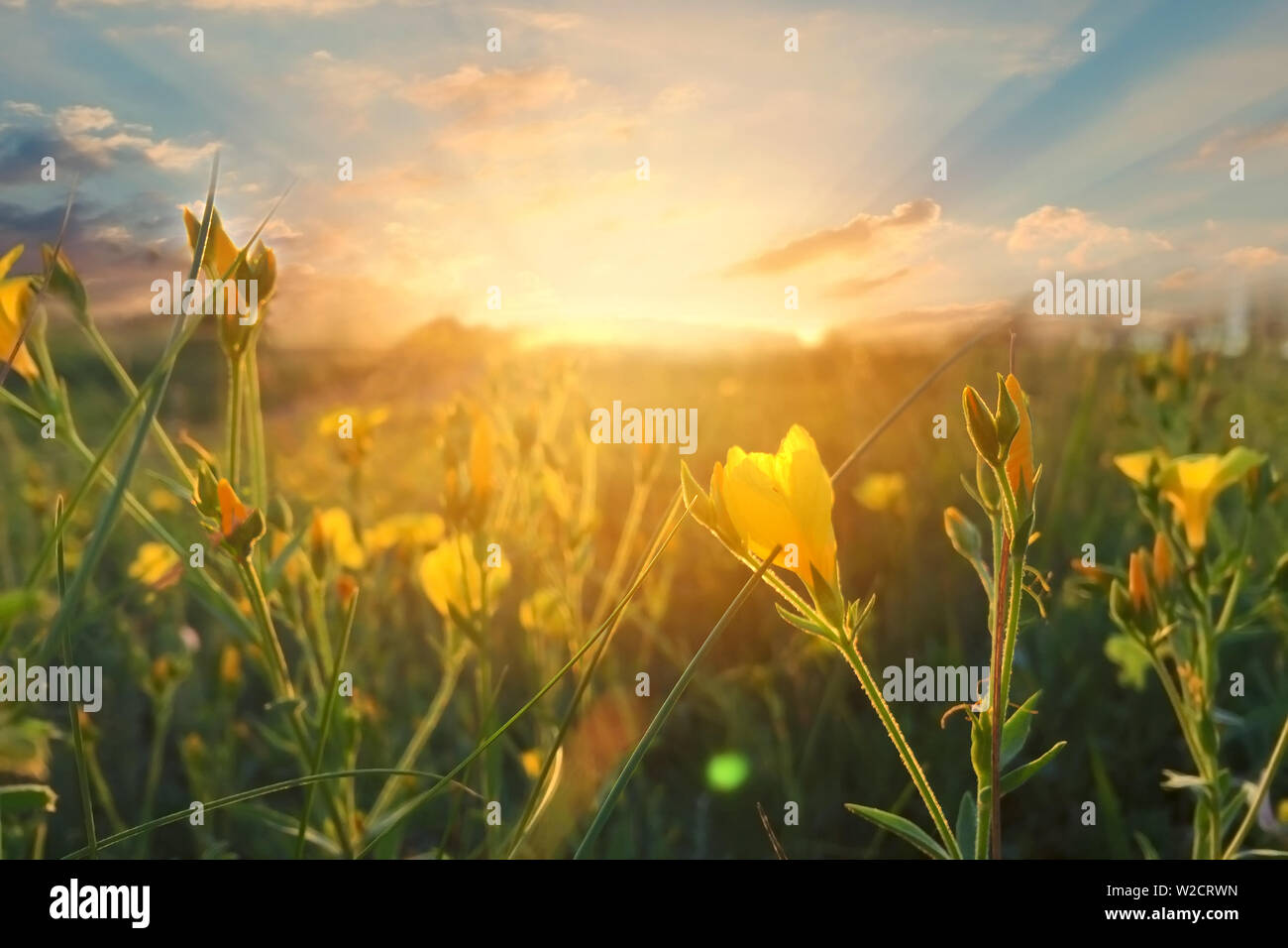 Fiori Selvatici Al Mattino Su Sfondo Di Sunrise Sunny Alba In Campagna Soft Focus Foto Stock Alamy