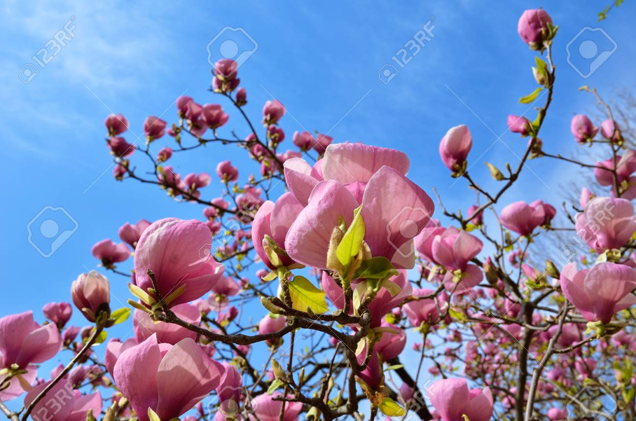 Immagini Stock Un Albero Di Magnolia E Fioritura Contro Il Cielo Di Primavera Magnolia Piattino O Magnolia Soulangeana E La Piu Famosa Genere Giardino Image 25297022