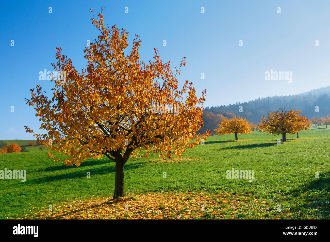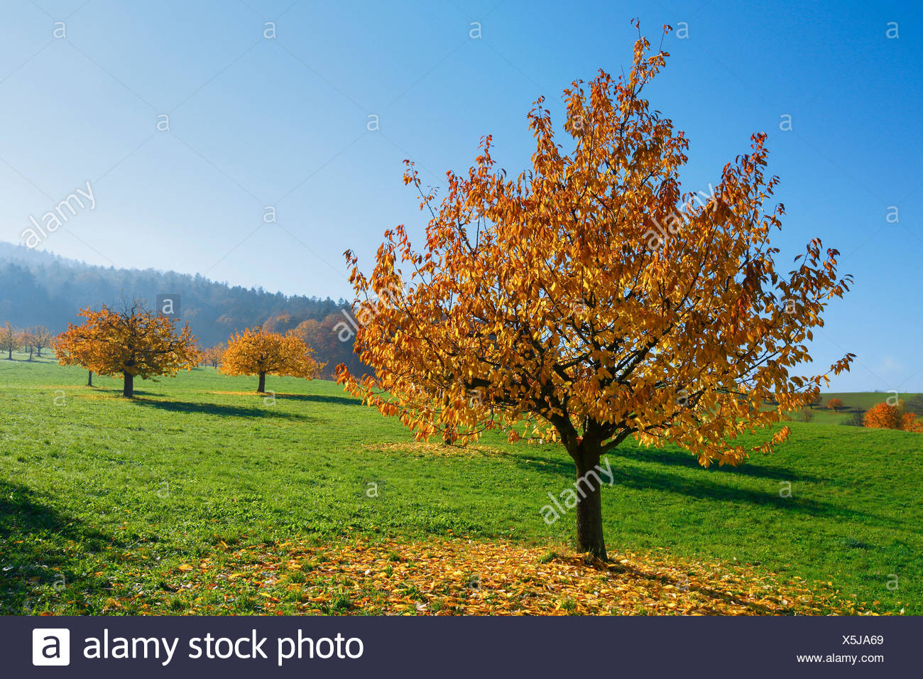 Gli Alberi Di Ciliegio In Autunno Prunus Avium Svizzera Foto Stock Alamy