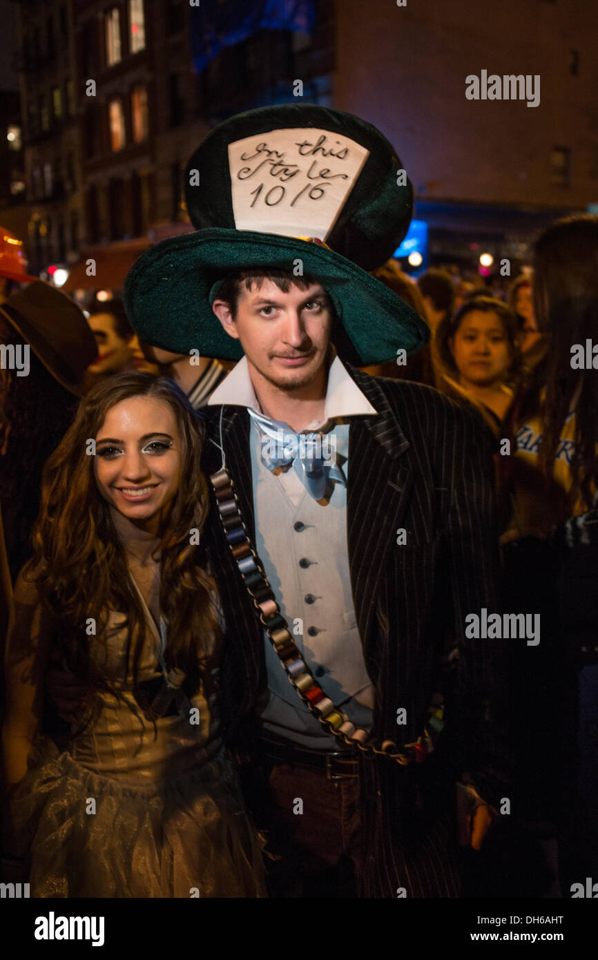 New York Ny 31 Ottobre 2013 Un Giovane E Vestito Come Il Cappellaio Matto E Alice Da Lewis Carroll Alice Nel Paese Delle Meraviglie In New York Del Greenwich Village Halloween Parade