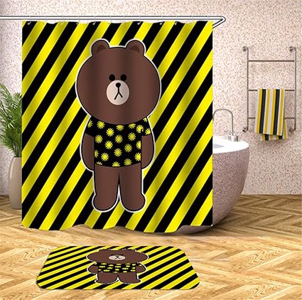 Zzzdz Orso Dei Cartoni Animati Sfondo A Strisce Gialle Tenda Da Doccia Stampa 3d Ad Alta Definizione Senza Scolorimento Facile Da Pulire 180x180 Cm Tappetino 40x60 Cm Amazon It Casa E Cucina