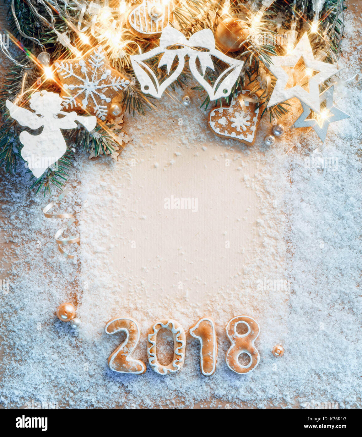 Scheda Di Natale Con Biscotti E Giocattoli Di Natale Sulla Neve Buon Natale E Felice Anno Nuovo Vista Dall Alto Dei Prodotti Ad Alta Risoluzione Foto Stock Alamy
