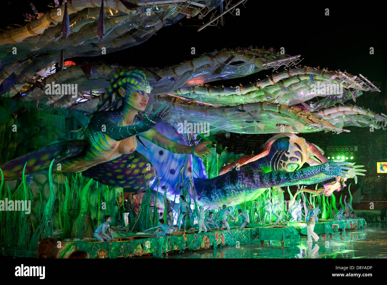 Boi Bumba Festival Team Caprichoso Un Galleggianti Progettato Con Elementi E Personaggi Fantasy Dalle Profondita Del Fiume Rio Delle Amazzoni Foto Stock Alamy