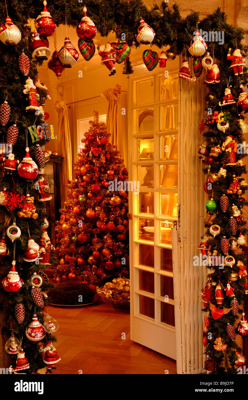 Decorazione Di Natale Entrata In Complemento Di Natale Con La Vista Ad Albero Di Natale Decorato In Villa Ambiente Norimberga Middl Foto Stock Alamy
