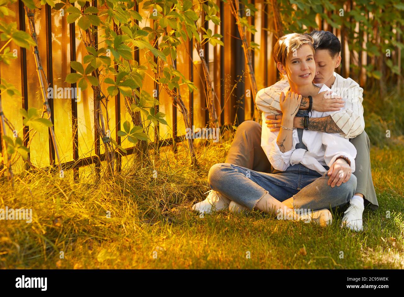 Due Amiche Che Si Abbracciano In Un Parco Tenersi Per Mano Abbracciare Stock Photo 179886940