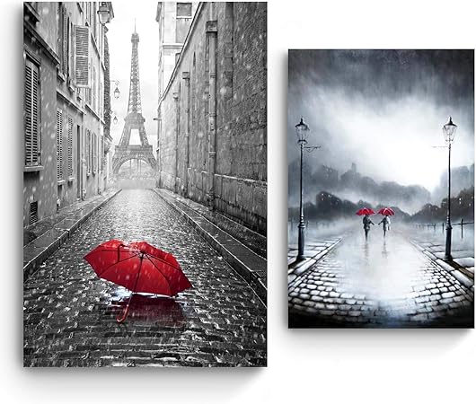Startonight Quadro Su Tela Ombrelli Rossi Amore Bianco E Nero Parigi E Coppia Sotto La Pioggia Compra Uno E Prendi Due Amazon It Casa E Cucina