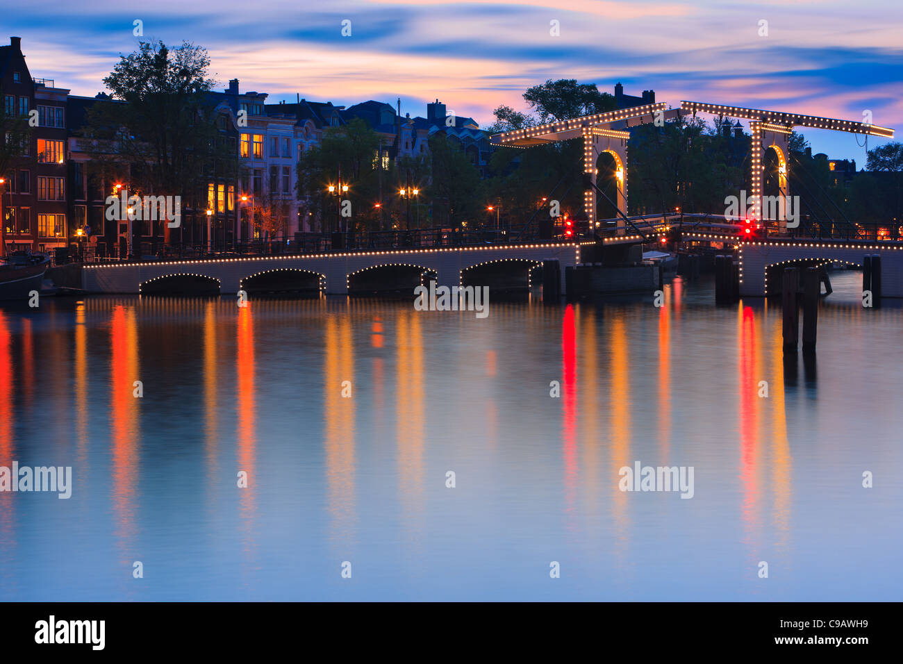 Paesi Bassi Amsterdam Magere Magro Brug Ponte Citta Amstel Usato Centro Sopra Notte Olanda Brug Illuminazione Canstock