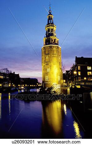 Torre Orologio Canale Amsterdam Il Paesi Bassi Olanda Europa Il Illuminato Torre Orologio Riflette In Il Calma Acque Di Il Canale Grachten In Centro Amsterdam Notte Archivio Immagini U26093201 Fotosearch