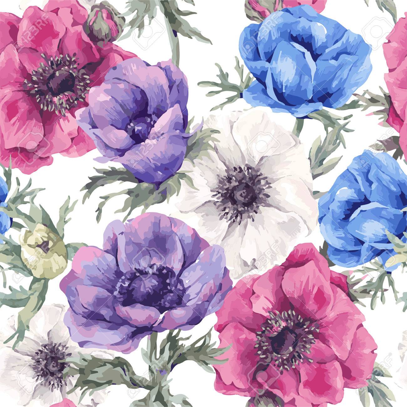 Vettoriale Estate Modello D Epoca Senza Soluzione Di Continuita Floreale Con Fioritura Anemoni Fiori Del Giardino Botanico Anemone Illustrazione Naturale Su Bianco In Stile Acquerello Image 59803255