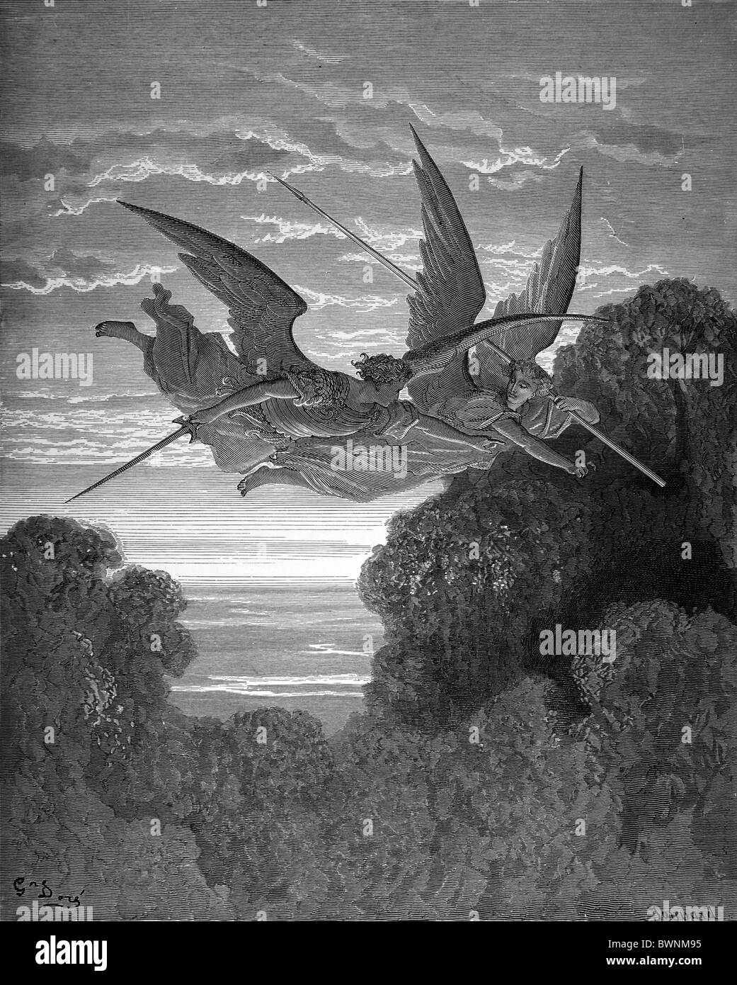 Gustave Dore Gli Angeli Ithuriel E Tsefon Da John Milton Il Paradiso Perduto Bianco E Nero Incisione Foto Stock Alamy